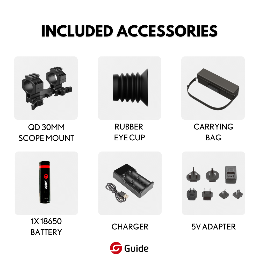 The Guide TU425C 3.0 is a compact thermal riflescope with a 1.43-inch AMOLED touchscreen display — a fundamentally different form factor that replaces the traditional eyepiece with a rear-mounted screen, making it the smallest and lightest thermal optic in the Guide TU lineup at just 438 grams. With 0.7x base magnification, a standard 30mm tube, and the full Guide 3.0 feature set, the TU425C is designed for hunters who want thermal capability in the most compact, lightweight package possible.